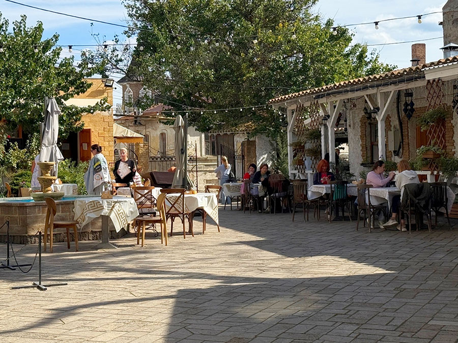 - выпить кофе с восточными сладостями в «Гезлевских воротах» или отведать крымскотатарской кухни в кафе «Джеваль» напротив ворот — всё это часть одного этнического комплекса, где чтут традиции и варят умопомрачительный кофе на песке по султанскому рецепту, которому уже 500 лет.