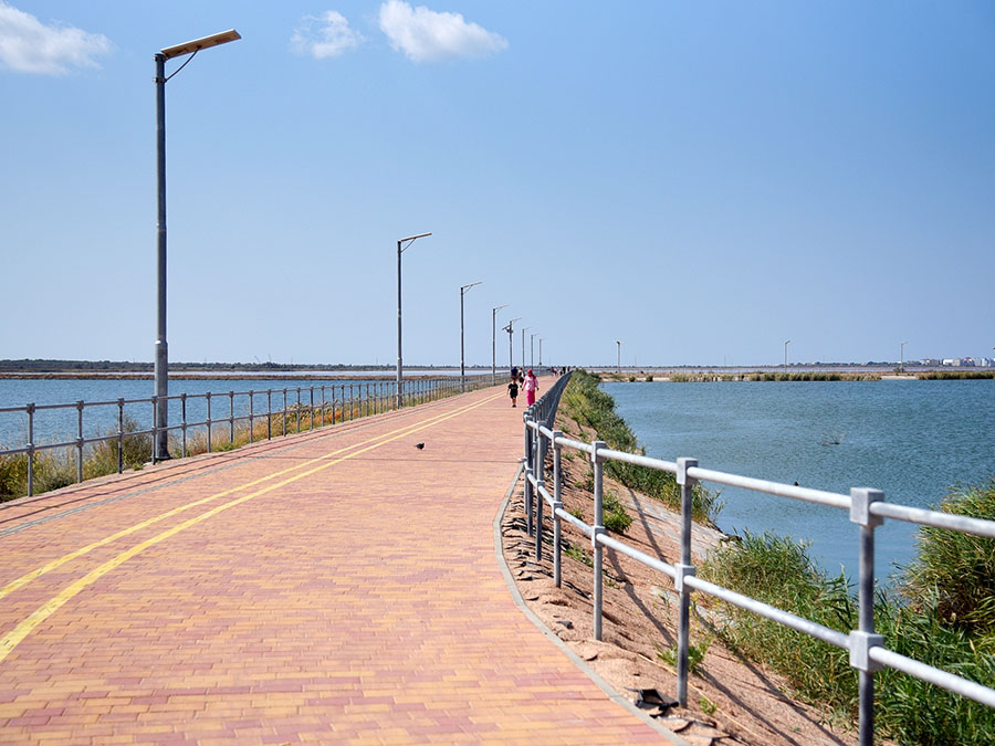 Подарок жителям и гостям города, реализованный к сезону-2021 — новая набережная вокруг целебного Сакского озера. Именно в нем добываются лечебные иловые сульфидные грязи, которые и превратили Саки не просто в город, но в город-курорт.