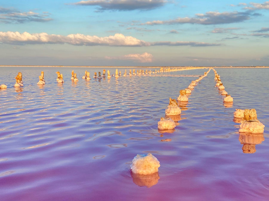 С недавних пор побережье соленого озера облюбовали фотографы. Потому что в теплые летние месяцы вода в озере становится ярко-розовой. Всё благодаря активному размножению в нём микроорганизмов. Кто не мечтает о фотосессии на розовом мелководье? Проехать к озеру легко на любой машине.